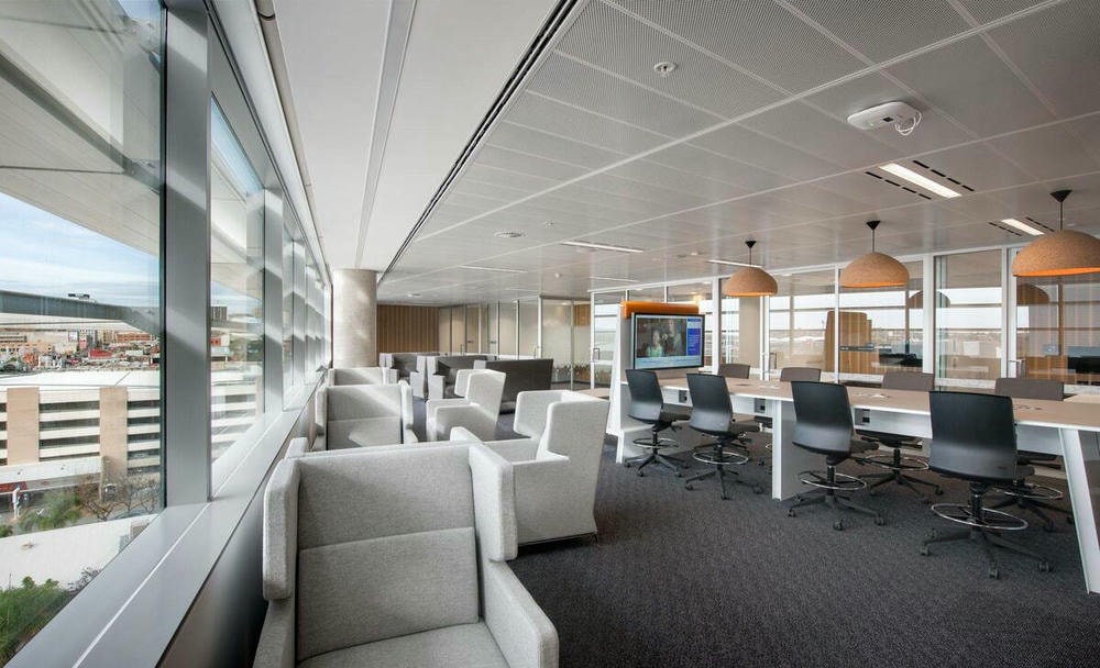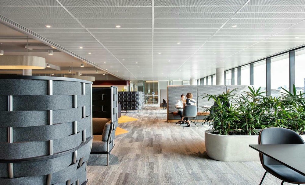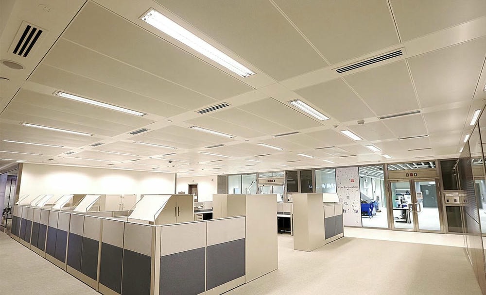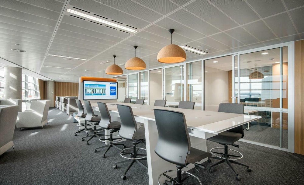 - Tòa nhà văn phòng: Mang lại không gian làm việc chuyên nghiệp, hiện đại và giảm tiếng ồn hiệu quả. Khả năng tháo lắp linh hoạt giúp bảo trì hệ thống điện – điều hòa dễ dàng.