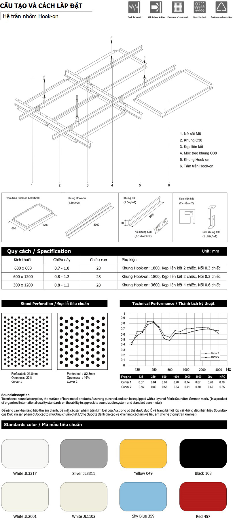 - Thông số kỹ thuật của trần nhôm Hook-on